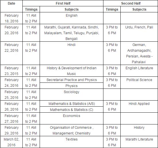 Hsc 12th Time Table Maharashtra Board 2016 Fyjc First Merit